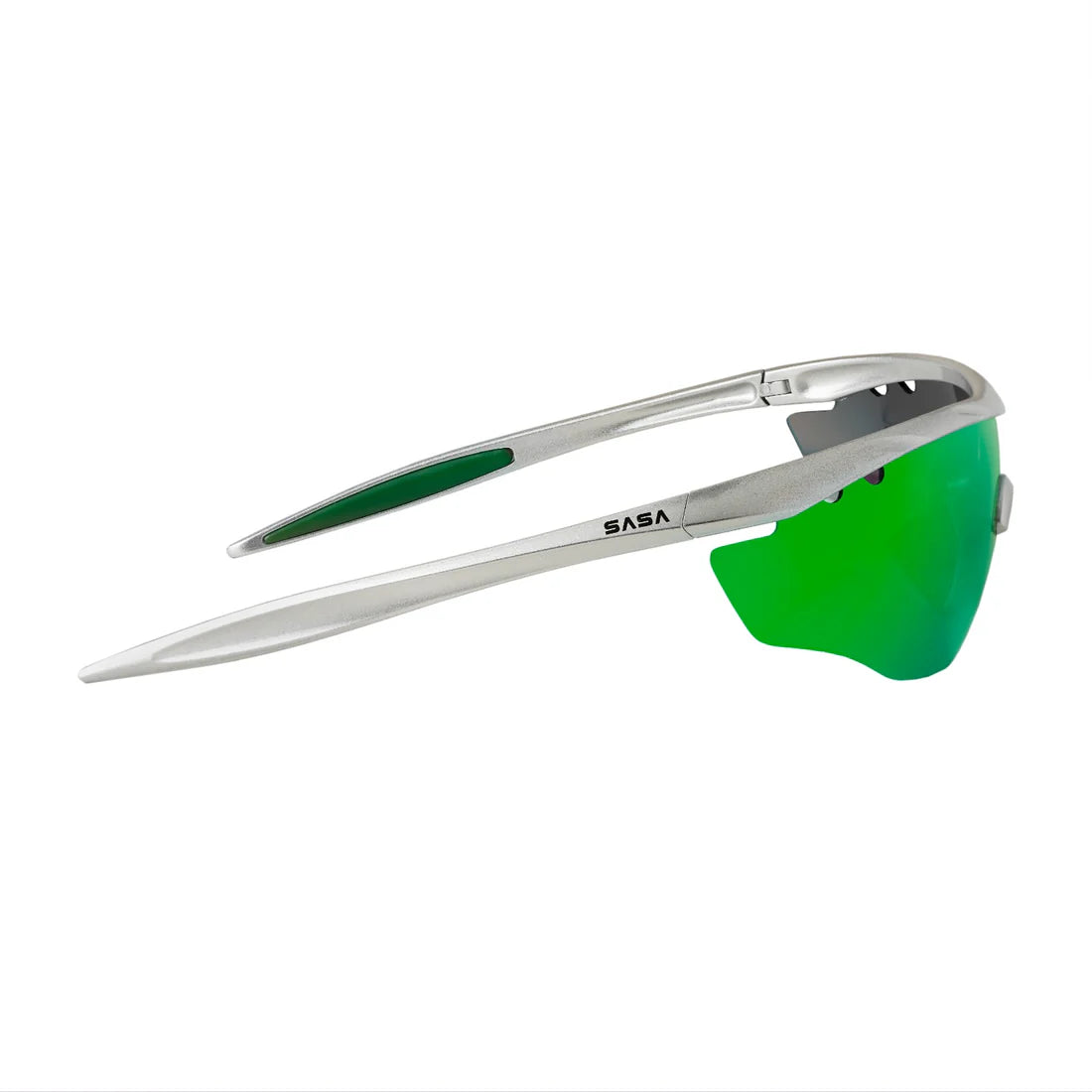 SASA Matte Silver Frame Green Revo Lens Sports Sunglasses