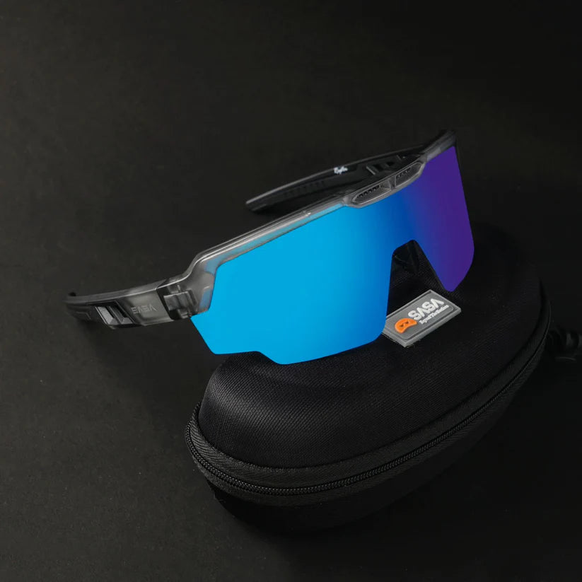 SASA Raptor Translucent Grey Frame Ice Blue Revo Lens Sports Sunglasses